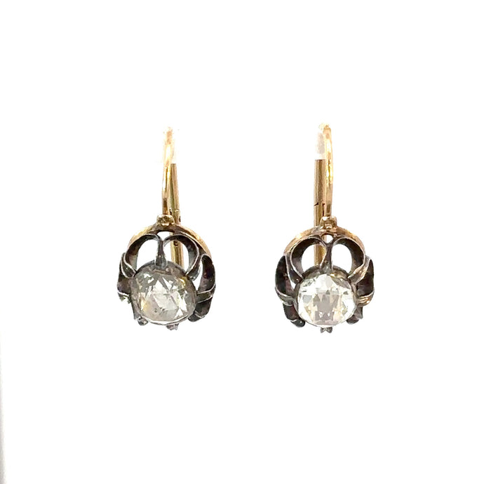 Antique 2ctw Rosecut Collet Earrings in 18K Gold and Silver