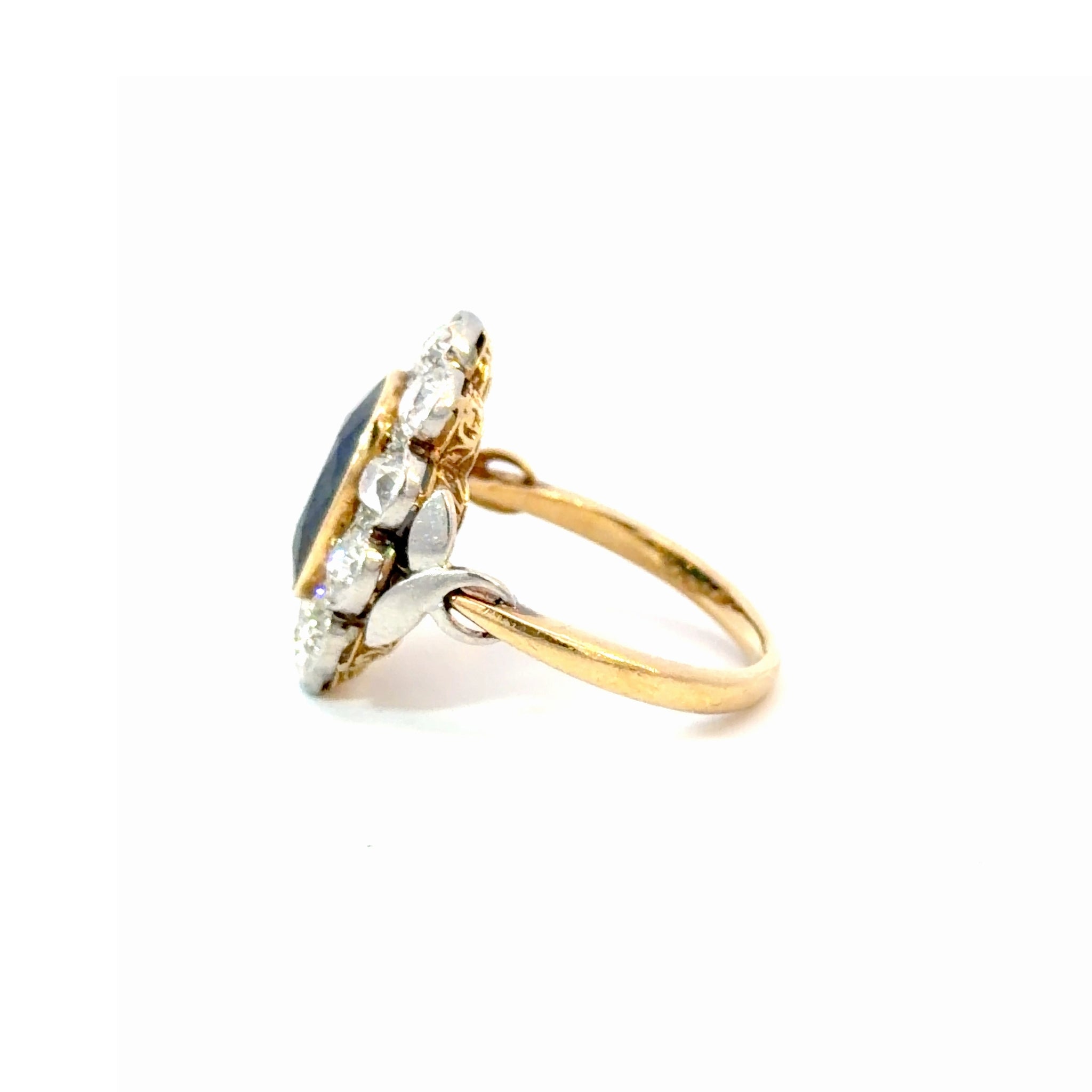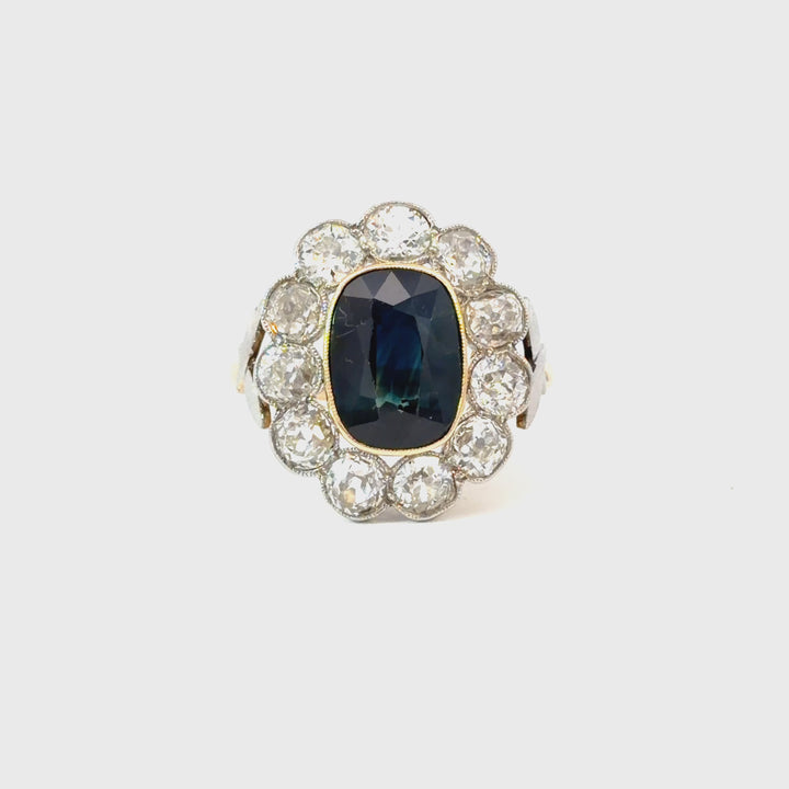 Edwardian Sapphire & Diamond Cluster Ring – Antique Platinum & Gold